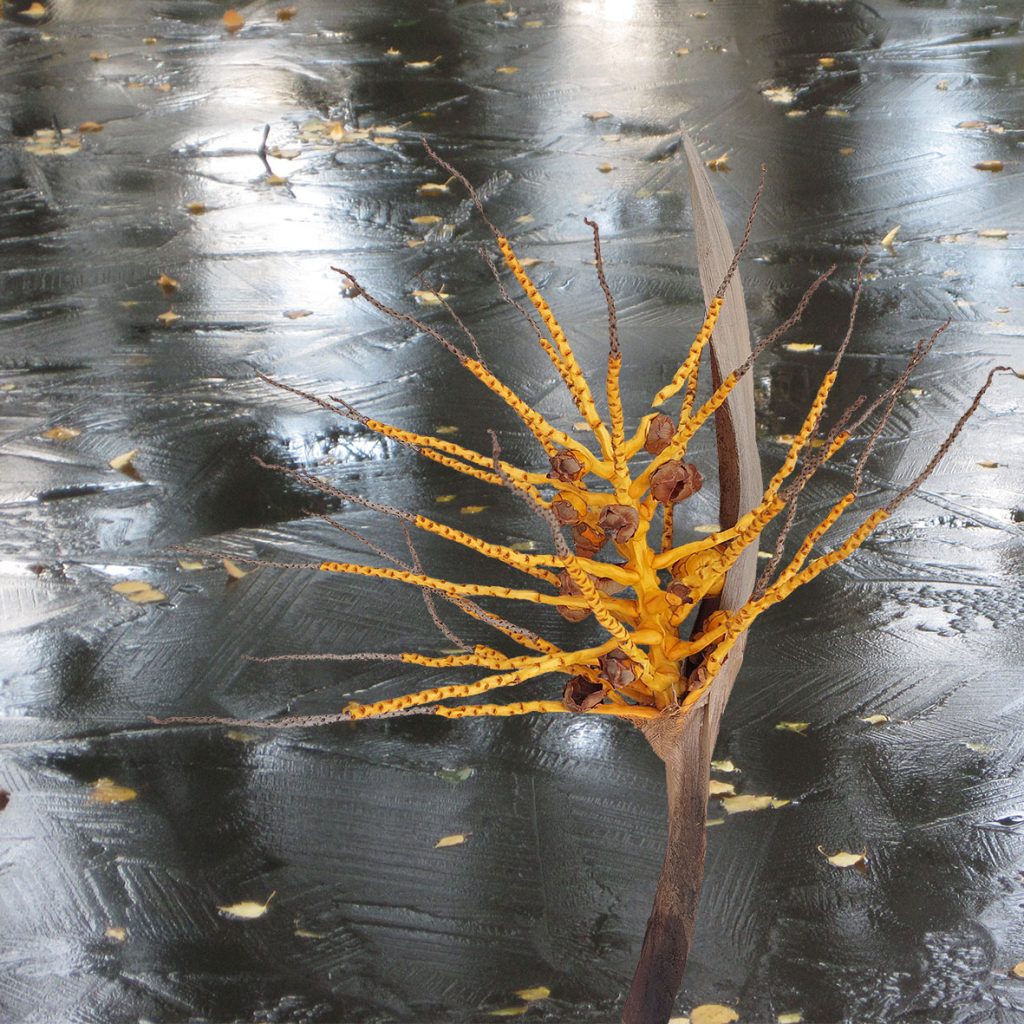 In the autumn 2018 while the daylight was diminishing my green plant called Angel´s wing started dropping its leaves. I was fascinated by their curvy shapes, their last struggles to survive. I admired their cellular structures and then let them glide into my collages.