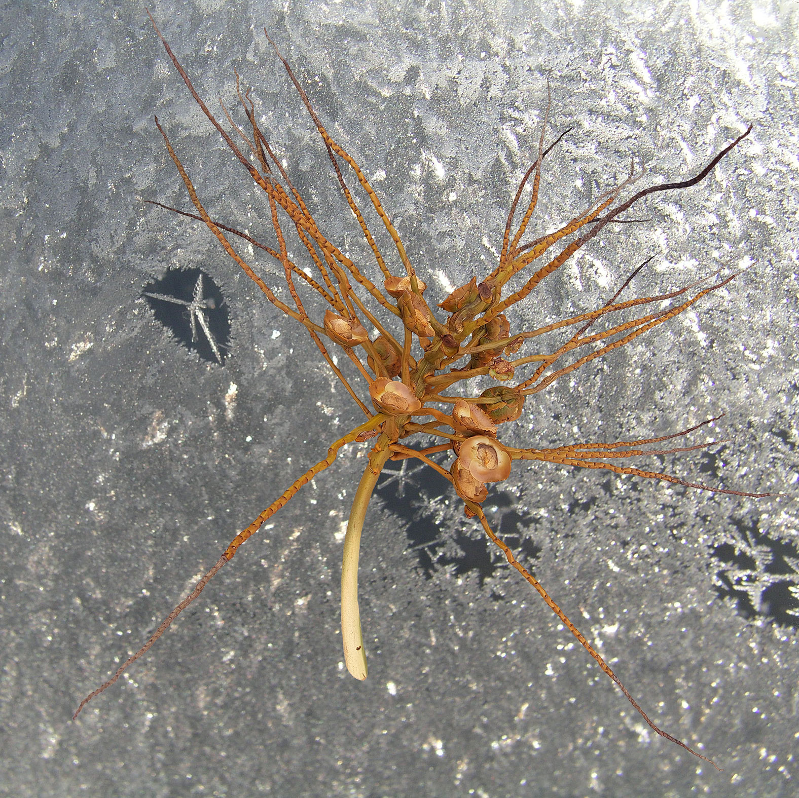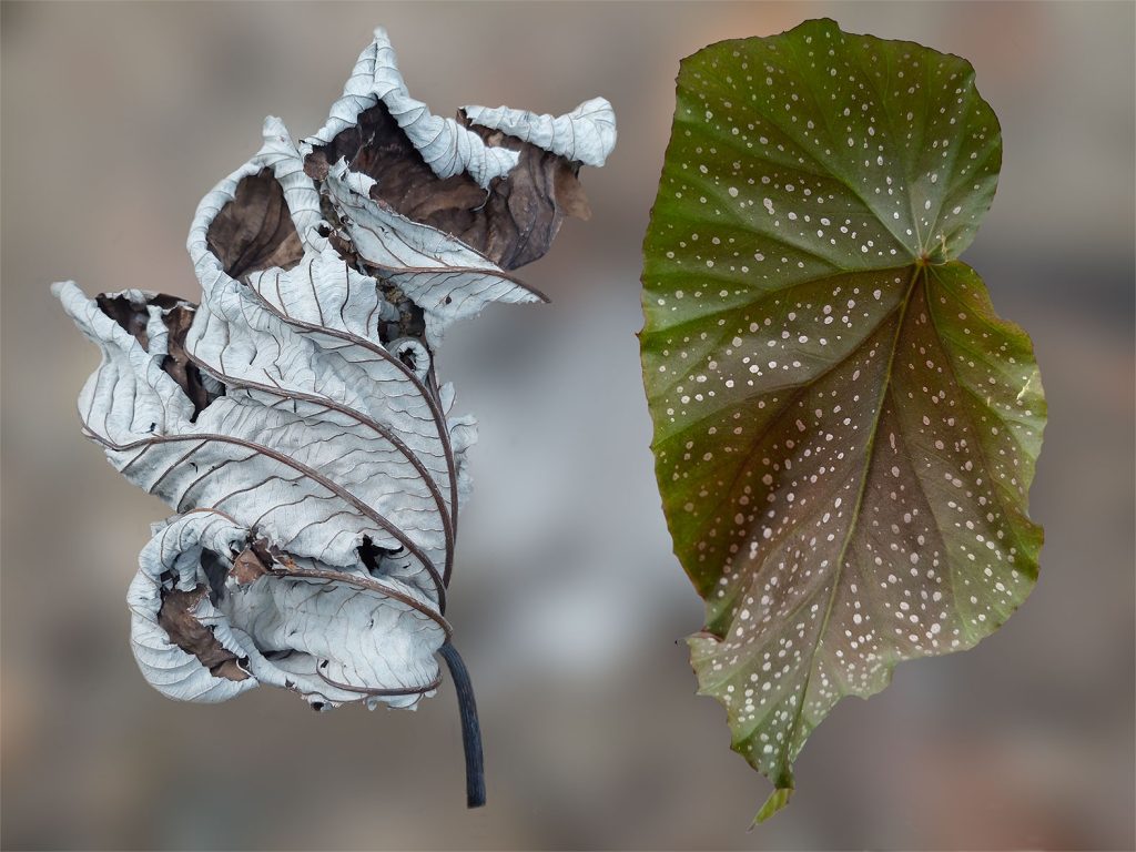 Viherkasvini nimeltä enkelinsiipi alkoi pudotella lehtiään. Lumouduin niiden käppyräisistä muodoista, viimeisistä kamppailuista säilyttää elämänkipinä. Ihailin niiden solurakenteita ja päästin ne sitten vapaiksi liihottelemaan kollaaseihini.