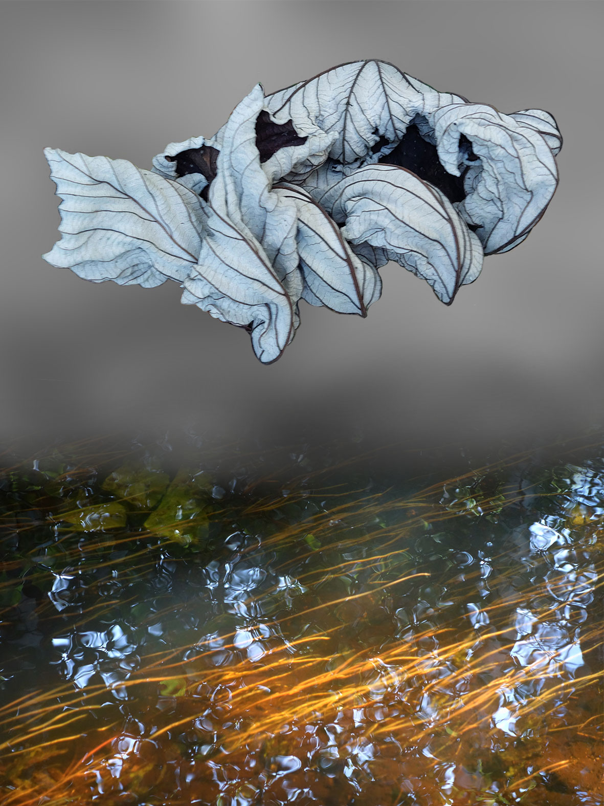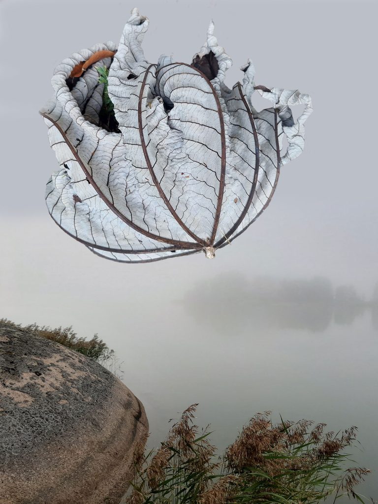 Eräällä ulkomaanmatkalla kohtaamani kuivuneet lehdet inspiroivat minua. Leikittelin ajatuksella lehtien erilaisilla kohtaamisilla suomalaisessa maisemassa.